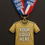 The perfect custom medal for any sports program with logo and colors to look like a real jersey from YOUR program.