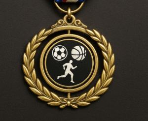 Step up your game by giving out a double sided medal with movable medallion. Logo Lanyard included.